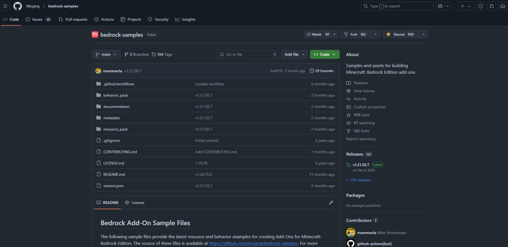 Java版はバージョンごとにある圧縮ファイルを解凍して確認する必要があるかと思いますが、統合版の場合はGithubの方に公式がサンプルを公開してくれています。